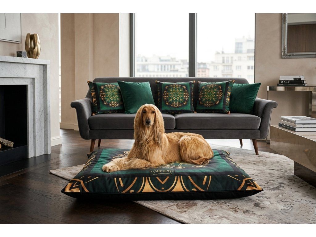 Royal Garden, designed by GAUCHITTO©, brings a sense of majesty and depth to your home, inspired by the most enchanting royal gardens. The captivating emerald-green base, with its subtle shading, creates the perfect stage for a traditional royal style that radiates peace and nobility. It is a piece that transforms your dog’s rest into a truly privileged experience.